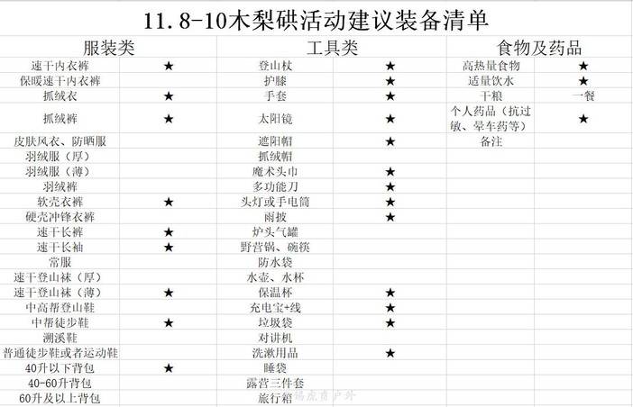 11月8日18:00火车站中旅大酒店背后河边集合,18:30滨湖区梁清路600号华润万家(滨湖店)肯德基门口(梁清路隐秀路口)集合,领队:豆爷13812068057,末末18914147117。请带好身份证参加。每个上车点等候5分钟,迟到视为自动退出,费用不退。全程对号入座,定点上下车,中途不停车。请穿着适合户外活动的服装、带好护膝、登山杖、雨具、遮阳帽子等装备,请穿着中帮徒步鞋参加活动。山顶住宿比较简陋,多人间公卫,水源紧张的时候不一定能洗澡,请大家由思想准备。有晕车晕船历史的,请自备药品。户外活动不要佩戴首饰,以免丢失。