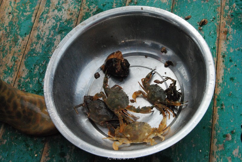 第一网拉上来,就一些螃蟹海螺。