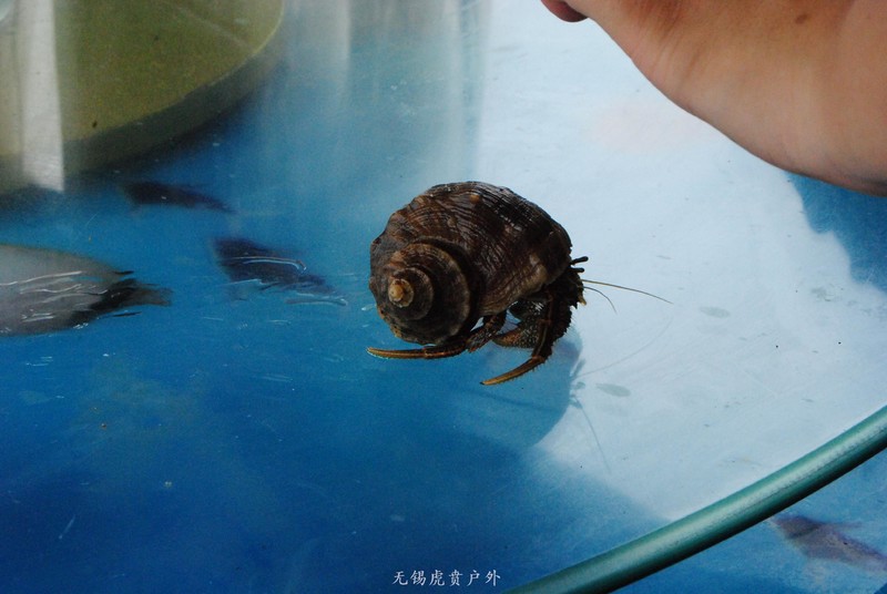 我比较感兴趣的是这种寄居蟹,放在那里不动,几分钟就爬出来,扛着海螺到处爬,一动,就又缩进海螺里了。