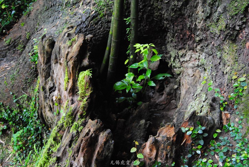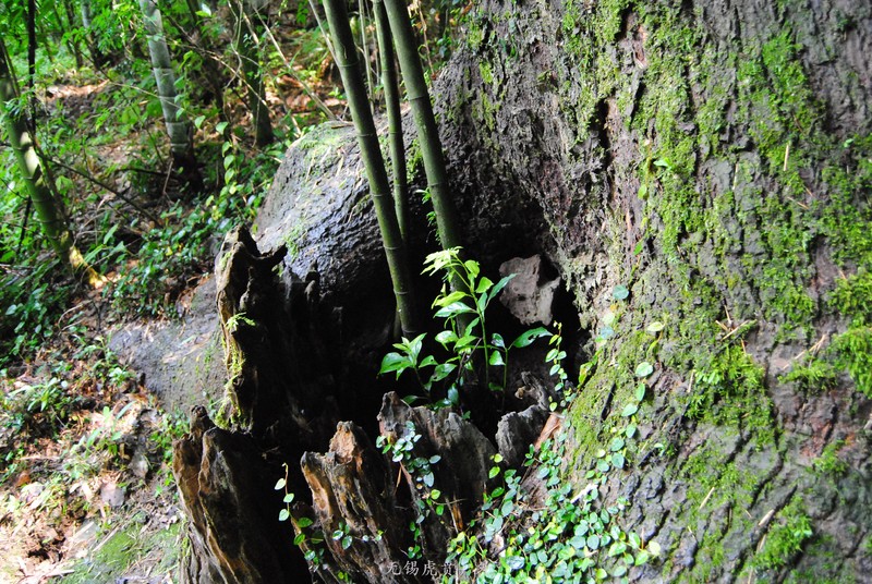 竹子长在树桩里。