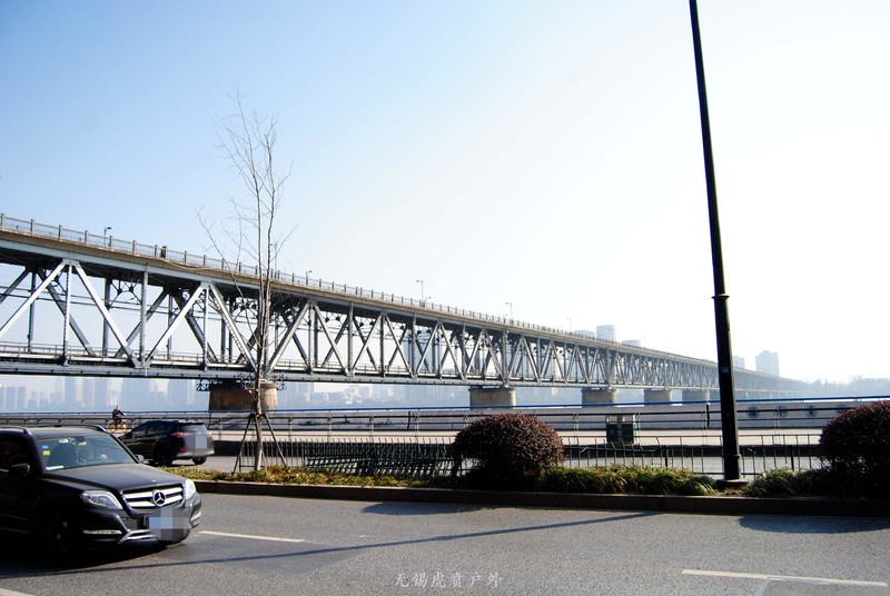 路上还有座公路铁路两用的桥。拍这桥的时候,正好旁边一辆大奔开过。