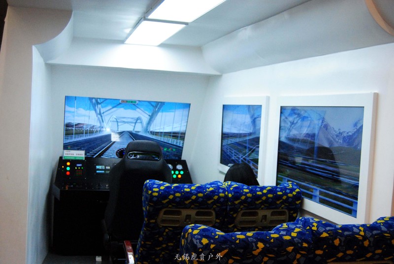 这边是一个体验区,坐座椅上面,可以感受到火车在铁路上飞驰的感觉。