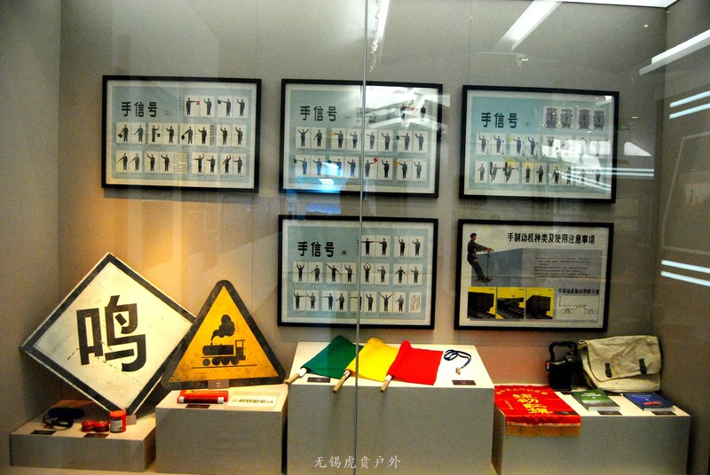 这里展览的是以前火车用的信号道具,包括手信号的图示。