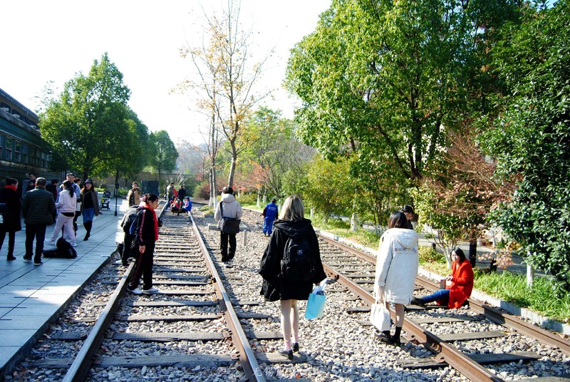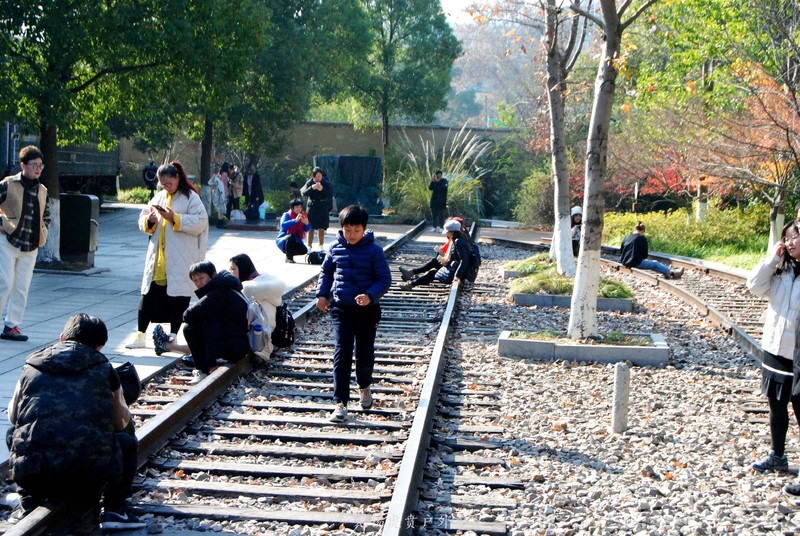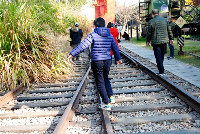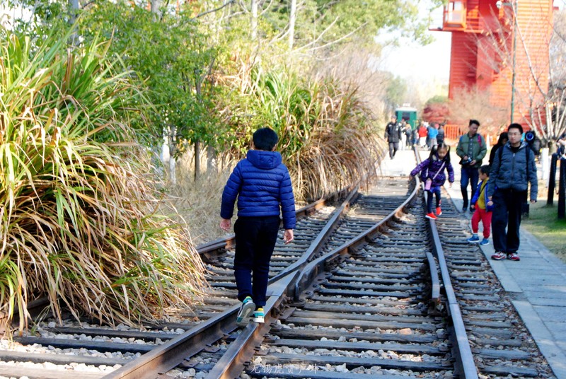 因为小火车没来,大家都可以在铁轨上走走看看。