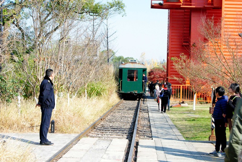 展览馆里看完,就走出来,这里有铁轨,有信号灯,还有一辆能开动载游客的绿皮小火车。