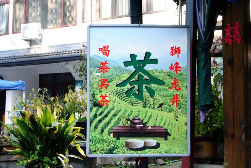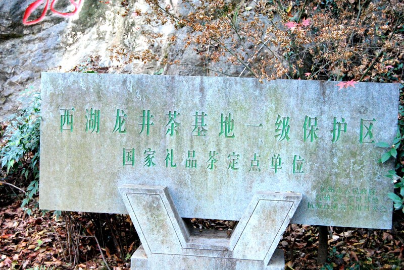 这里就有个“龙井问茶”的牌牌,引得好多人上去合影,我趁没人时拍张。