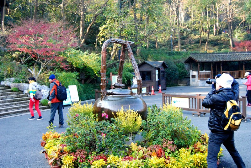 一位游客还以妖娆的姿势,拍这个大茶壶。