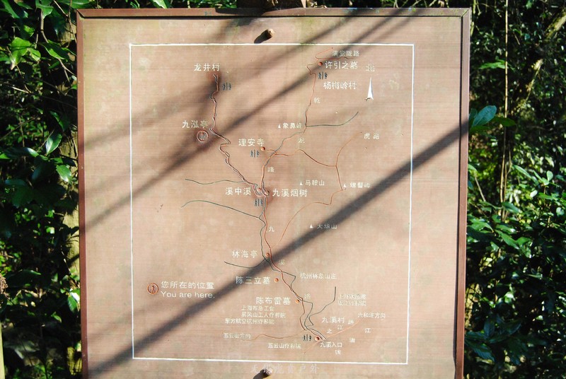 这里还有个地图,我们要从地图的左上角的龙井村,走到地图的最下面,那里有个公交站台,也是团队约定的集合点。