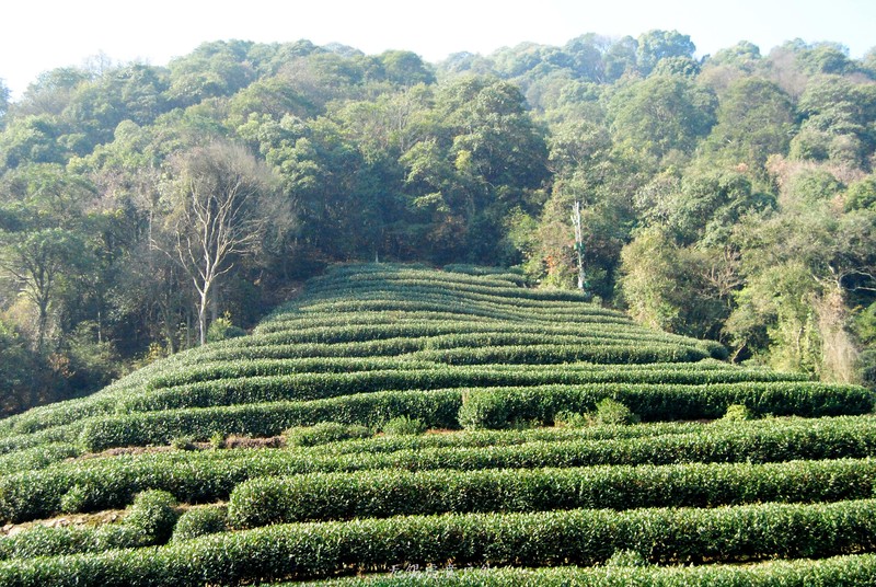 这山上就是种的茶树,阳光洒下,茶树也在沐浴初冬的阳光,在努力生长。