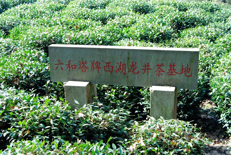 这茶园里,特意有块石碑,六和塔牌龙井茶基地。