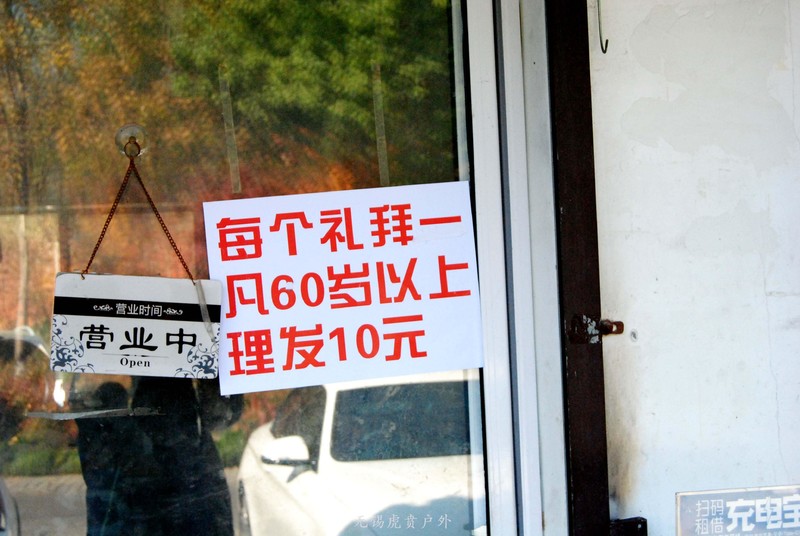 这在返回大巴的路上,看到路边的一个理发店,特意有块牌牌。