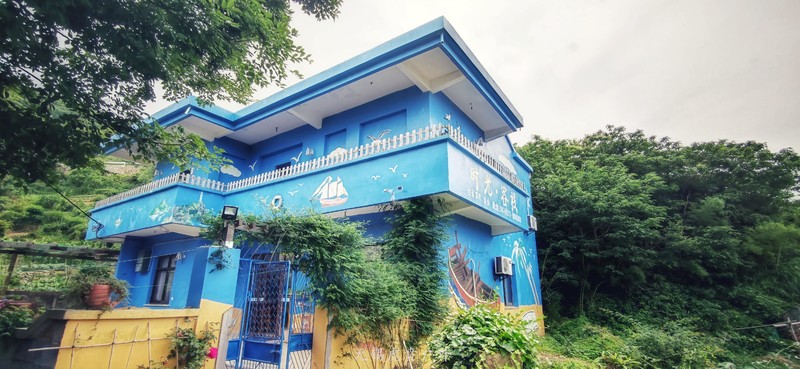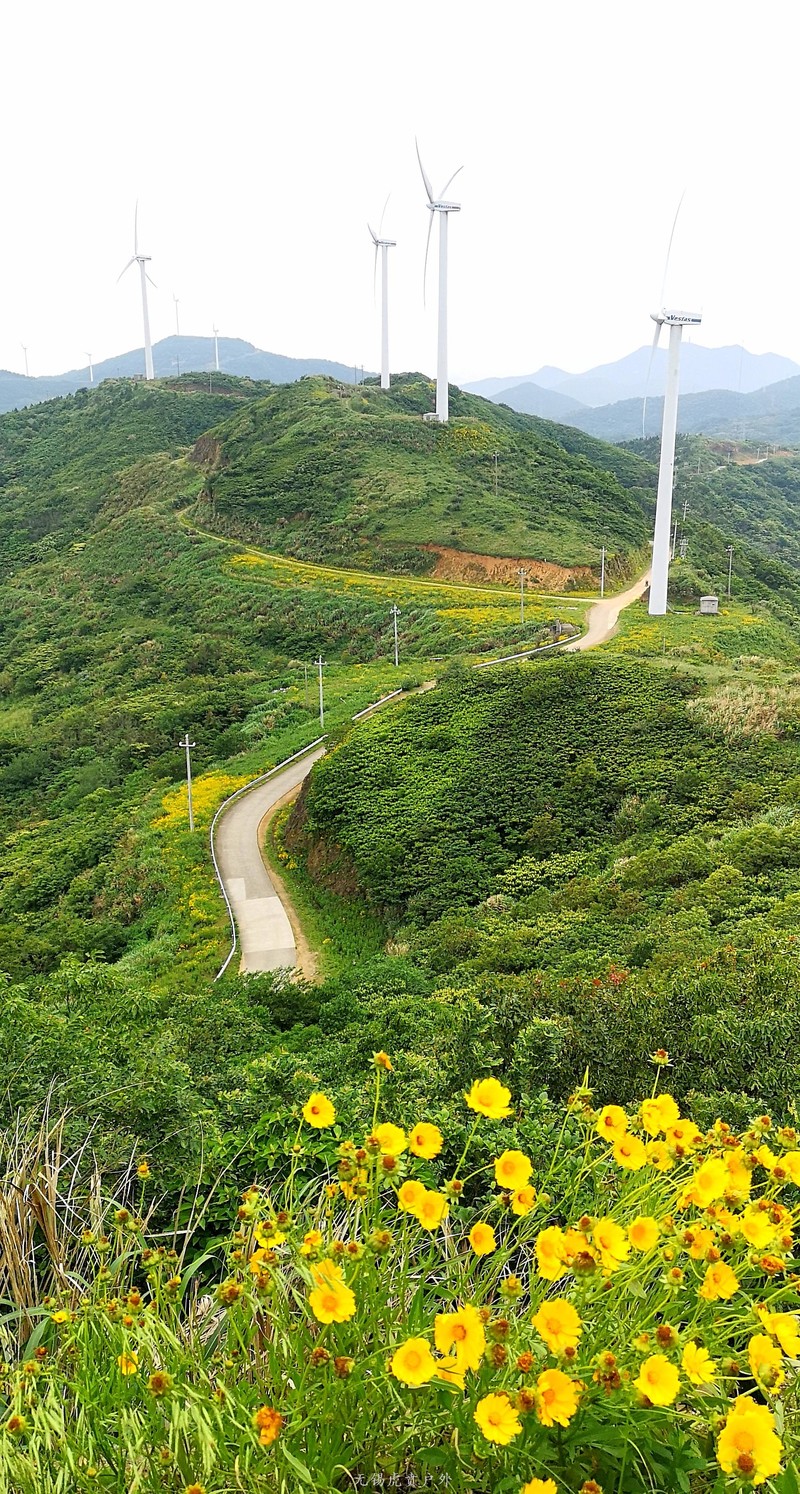 稍事休息我们一起来到了村口的海边,堤坝上和房子外墙画上了很有特色的渔民画,很漂亮,岛则山的栈道景色不错,走走也轻松。走完栈道我们就一起沿着村里的小路往风车平台去,走到山顶回头远眺,景色相当漂亮,请大家忽略黄不拉几的海水,哈哈哈!