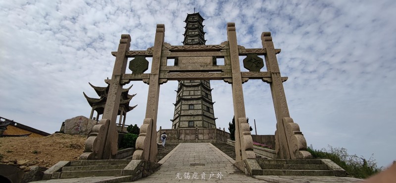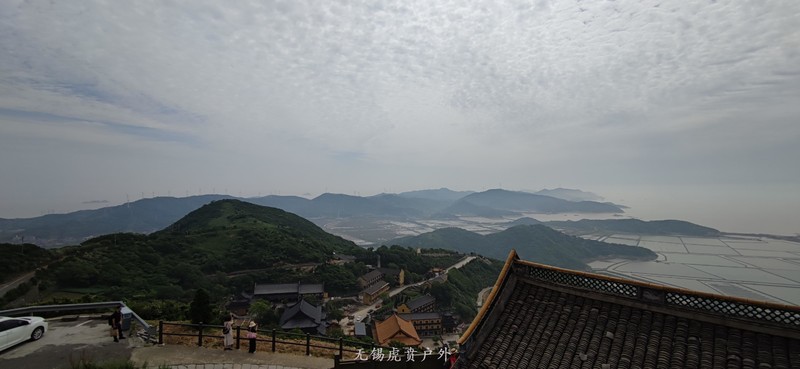 第二天石榴姐一早就窜到山顶去看日出了,唉!这没见过世面的样子,这么具有仪式感的事情被他搞得像早锻炼一样。早餐后,我们前往岛上的制高点——观音山的最高点天灯顶,海拔314.4米,衢山岛四面环海,观音山南面山笼连海,峰顶常有云雾缭绕,山头若隐若现,似天庭仙境。夏秋季节,白云飘绕山尖,时浓时淡,似仙人驾云下凡,为"观音驾雾",是观音山的一大奇观。不过今天是个大太阳,没有云雾,但是山下景色却一览无遗。山顶广济寺门口有个很高的石塔,以前这是充当灯塔的,直插云霄,算是衢山岛的地标建筑了,原谅我受昨天航拍失联的阴影影响,今天没敢起飞,所以拍出来的照片像插了根蜡烛。