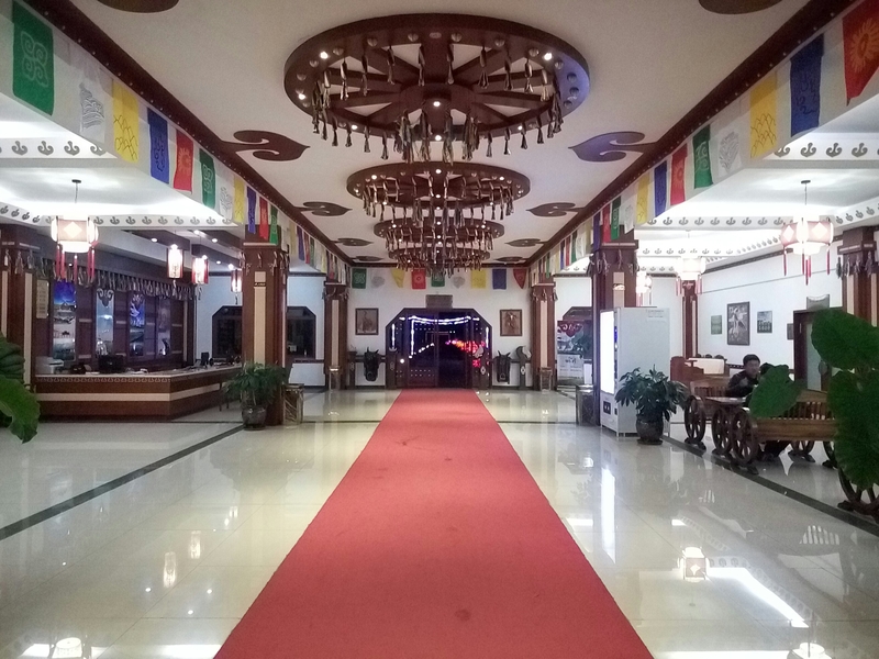 晚上21:00入住大汉酒店,已经躺在床上了!那威武的城楼是大汉行宫,旁边就是京北第一草原,吃完晚饭逛逛不错!酒店大厅那是相当气派,就是那房间我也是醉了,排一绺,可怜的我很是幸运,拿了最后一间,有点小小的郁闷,不心甘的数了一下,60cm*60cm的地砖一排是134块,我恰恰是住那第131块上,去个房间得走半里地!不过,说实话,房间条件还不错算了,朕休息了,你们跪安吧!