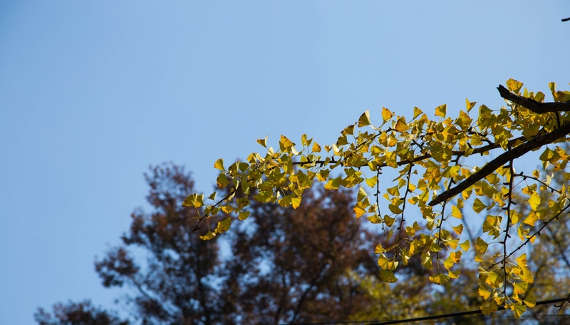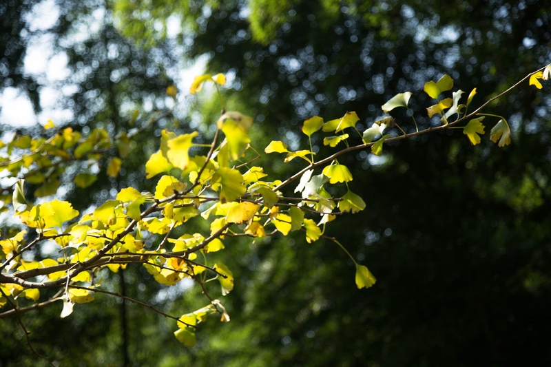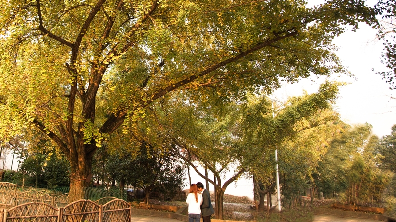 银杏长廊画中游,一树的金黄,迎风摇曳,犹如千扇同舞,给萧条的季节带来了动的点缀。一阵山风刮来,天空中飘飘洒洒的一片金黄落下,落在、身上、茶树上、小路上,那金色的飘摇,美不胜收。