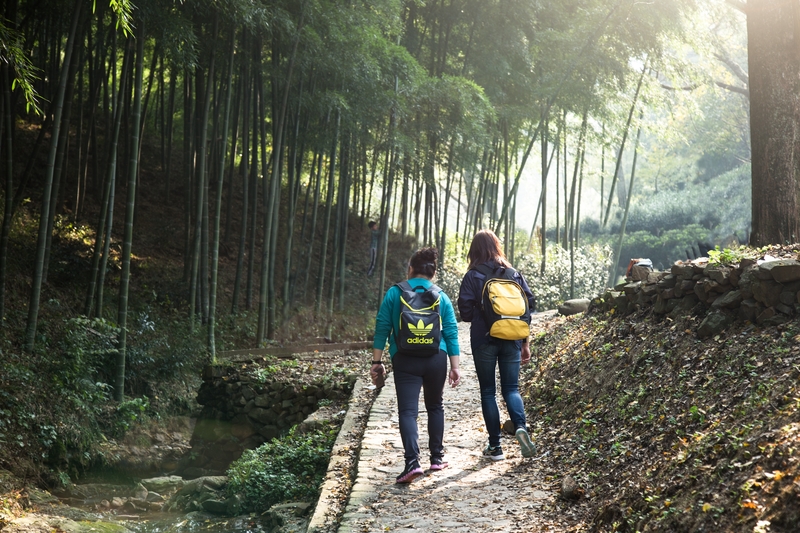 深山之中的古银杏树渐渐多了起来,从疏疏落落到成林成片,间杂竹林、梅树和茶树,不知不觉中人们已置身于古银杏的怀抱。银杏树一般单株或数株生长,惟独长兴成群成林,树龄均在百年乃至千年以上,实为世上罕见。入得其中,重重叠叠山,曲曲弯弯路,叮叮咚咚泉,尽显"原、野、奇"风姿,构成了一道罕见的风景线。