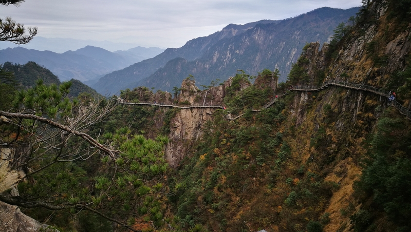 大明山有山有水,有奇松怪石,有草原有湖泊,走在悬空栈道上,极目远眺,红叶点缀其间,幽静,艳丽,诗情,画意,绝对是一个令人流连忘返的地方。