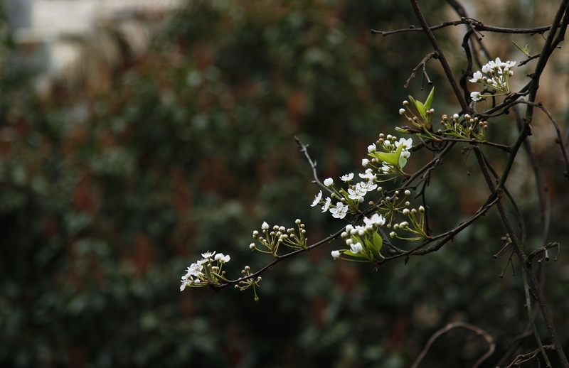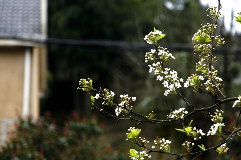 老屋集中在山腰上,黄泥砌的围墙、卵石铺就的村间小道,散发出乡野淳朴的气息。院角墙边、梯田溪水处,一树一树的梨花点缀其中,洁白倾人。春风拂过,纷纷梨花落,一地的斑白,一地的忧伤。