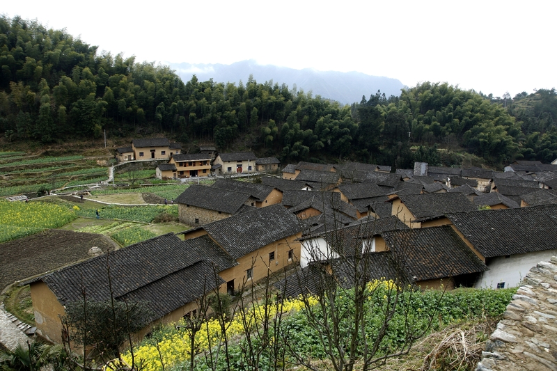 村庄不大,坐落在陡峭的山坡上,四周被层层梯田包围着。烟雨朦胧的季节或一抹斜阳映照的时候,一眼望去,有些布达拉宫的味道,因此被称为“江南布达拉宫”