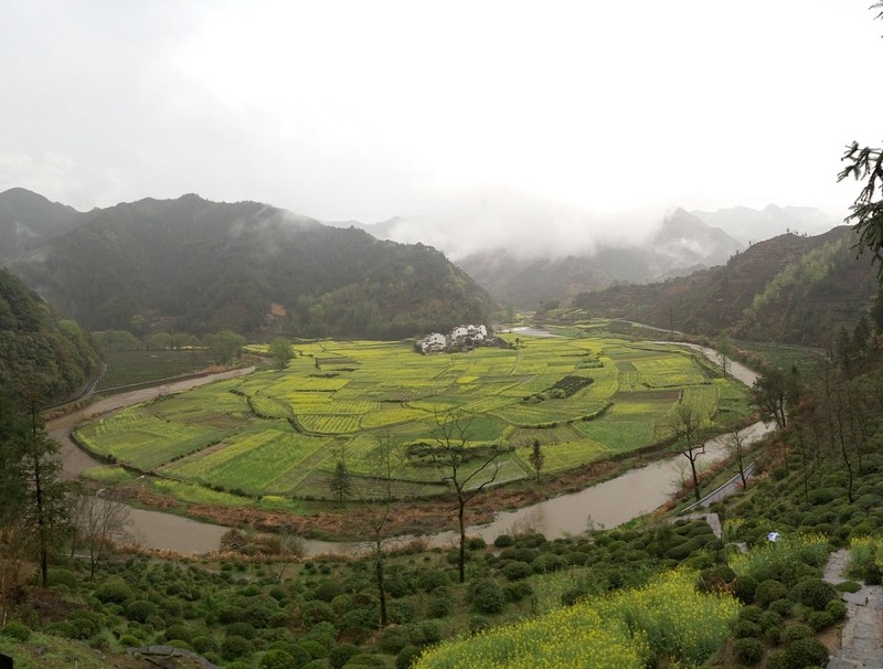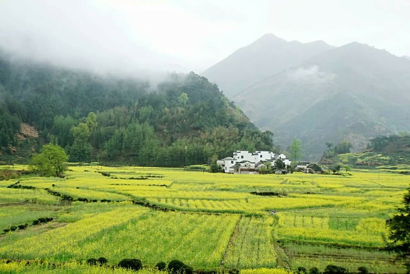 呈村八卦田油菜花全景,云雾缭绕,绝美之一!