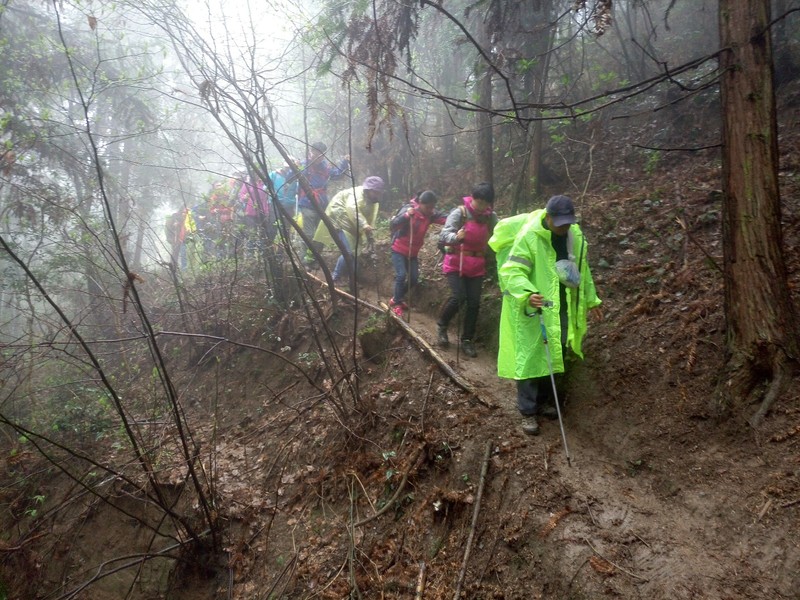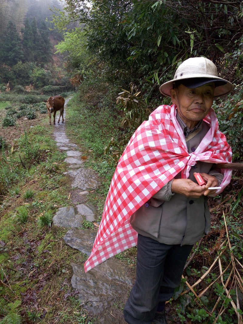 签名留念,70岁的向导继续给我们带路,看看人家啥装备,逼格走天下,越南帽,格子塑料台布雨披,打狗棒,雨鞋,醉吗?就是这么牛!