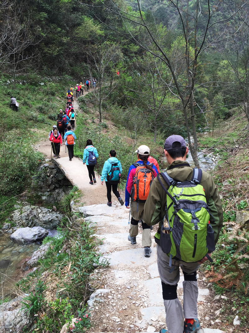 时隔半个月我又一次带队徽杭古道(这可是蓝山的专线,他要有时间的话肯定没我啥事,嘿嘿)。早上6:00,我们从无锡出发了,一路畅通无阻, 到达的时间比预计得要快。只不过周末走古道的人太多,到达换乘景交的地方,遇上了换乘的高峰期。