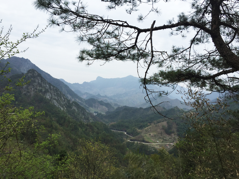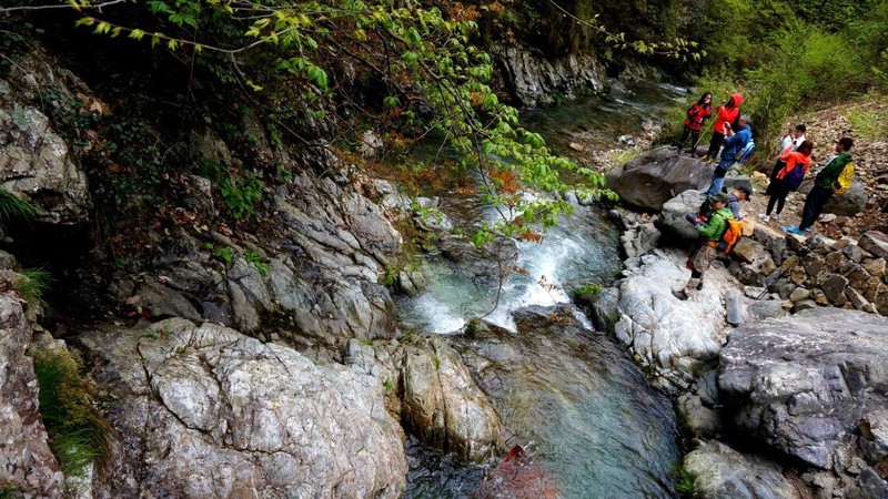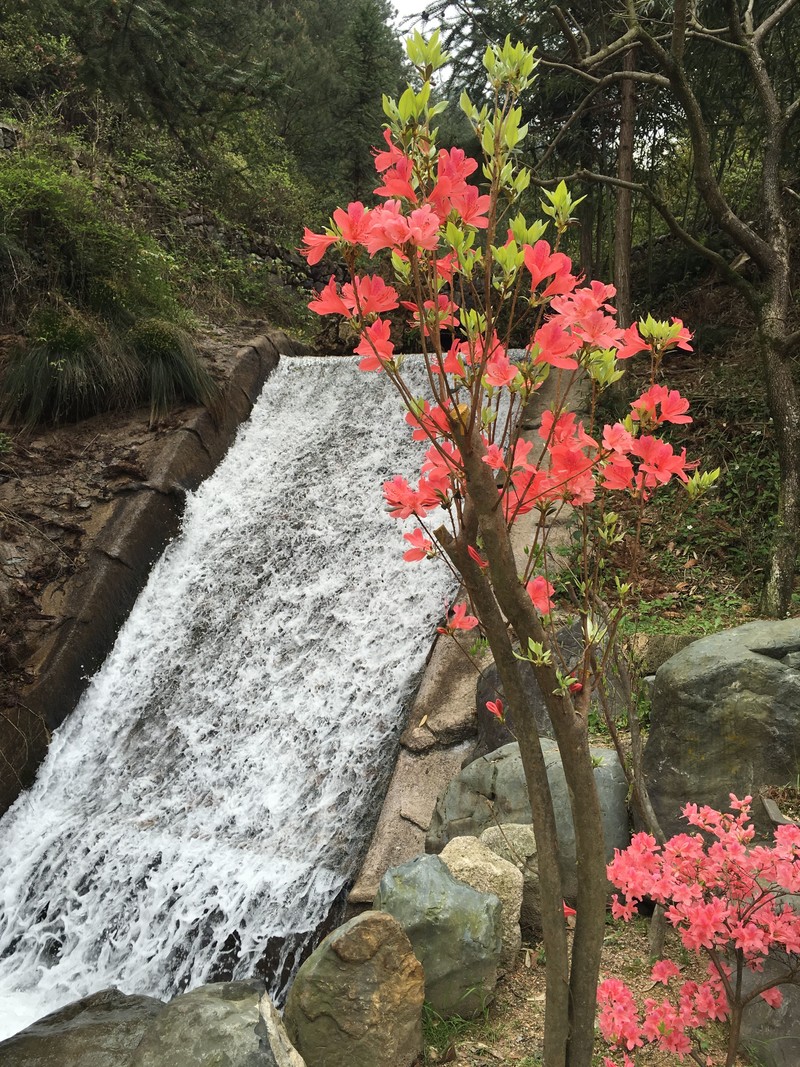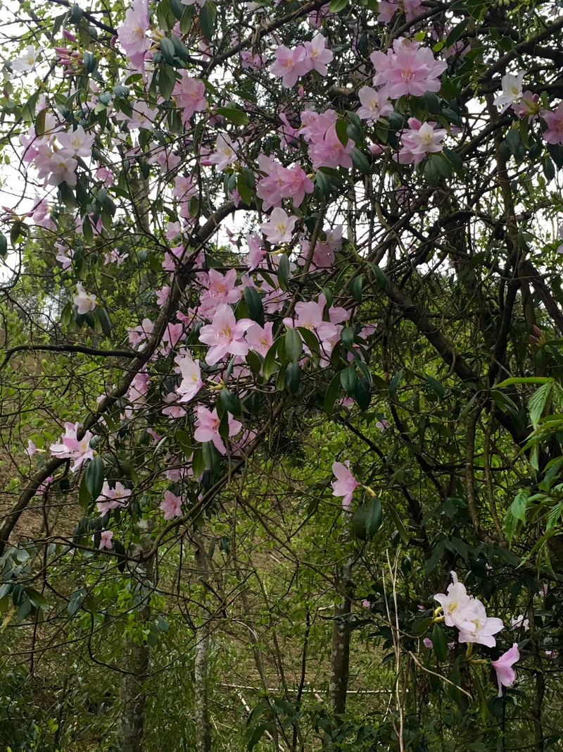 一路下来,风光也逐渐明朗。沿路溪水,山谷蜿蜒,远处山上映山红点点相衬, 将古道的美衬得恰如其分。