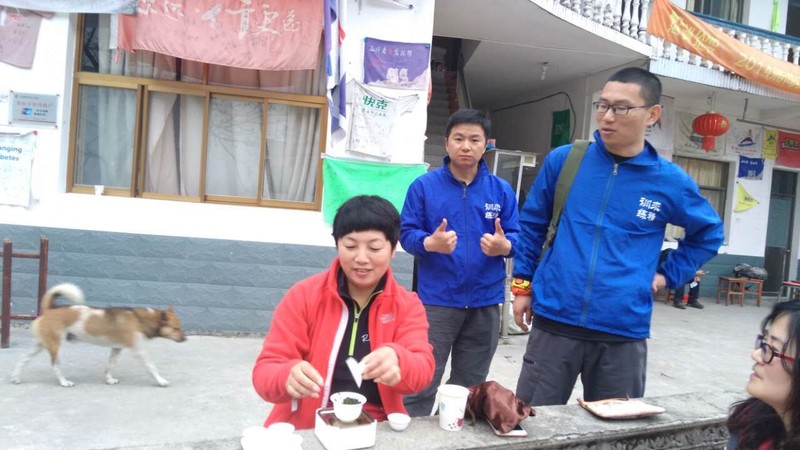 在这里有位腿脚不方便的阿婆,常年为路人供应免费凉茶。来徽杭之前老枪专门给了我十元钱,说每次虎贲路过让我们一定要捐的。看来我们这老板良心还是蛮好,哈哈