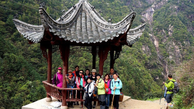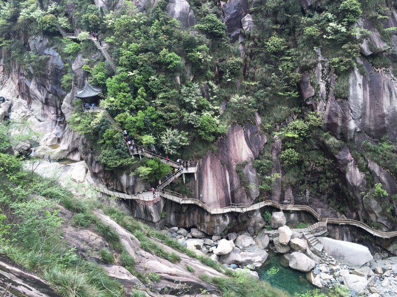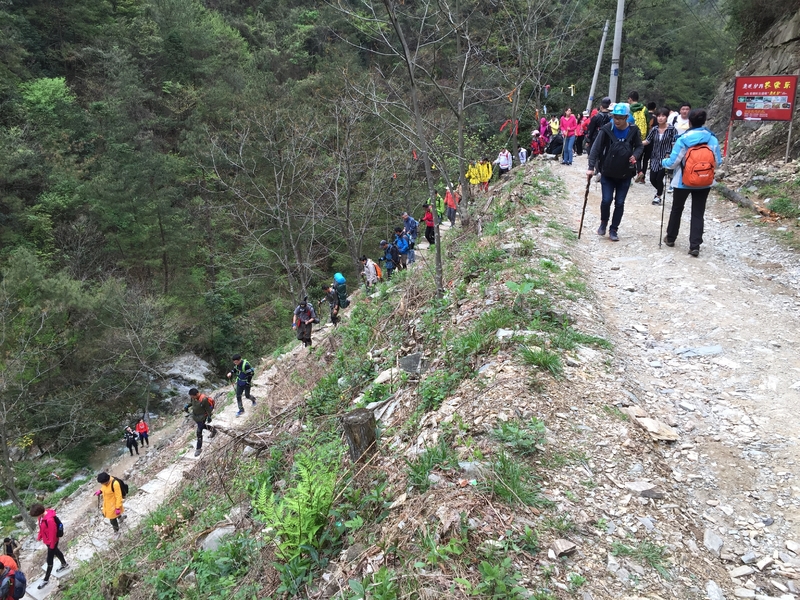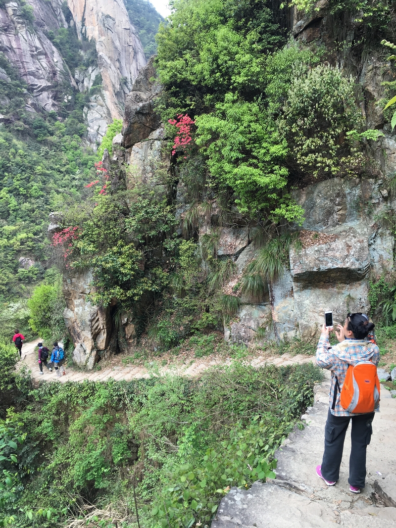 后面几公里走的多是石板路了,也是网上说的保留的古道。对面也新修了栈道。这段路过来,听到队友在说,为什么我们不走人工栈道,栈道多好啊。其实见人见智,古道,古道,才是来走的最大动力吧。