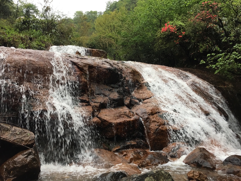 一路山泉瀑布为伴。雨越大,水越大。水越大,气势越大。