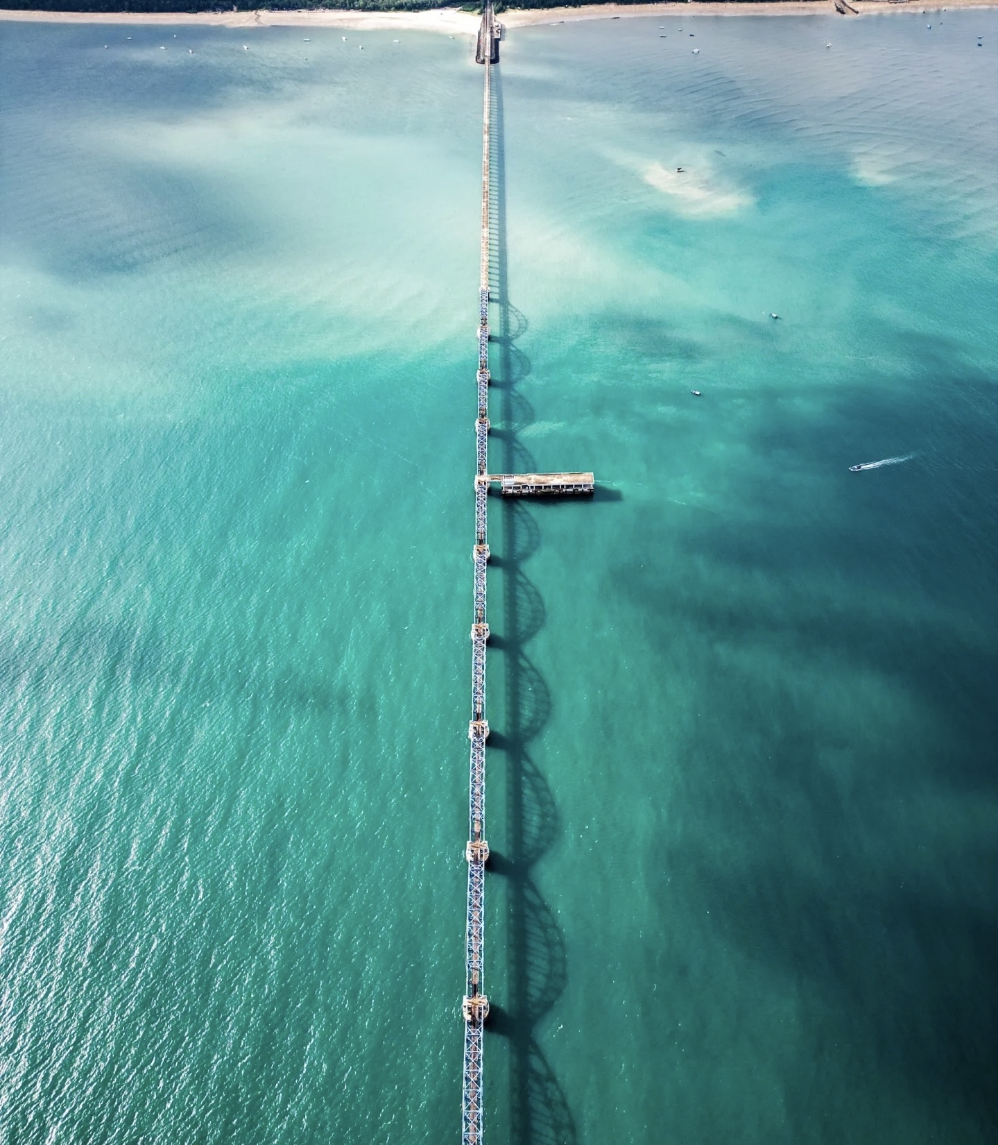 蓝桥是中石化于2005年投资8000万元,原计划作为接岸引桥,用于停靠30万吨级的运油船和天然气船,以解决涠洲岛的能源运输问题。由于环评手续等问题,蓝桥未能投入使用,最终被搁置荒废。如今,蓝桥已成为涠洲岛的网红打卡地,游客只能在附近的海滩以蓝桥为背景拍照打卡。蓝桥延伸到湛蓝海面之上,景象壮观,是当地人的海钓胜地,其入口隐匿于森林之中,增添了几分神秘色彩。后继续徒步至【贝壳沙滩】