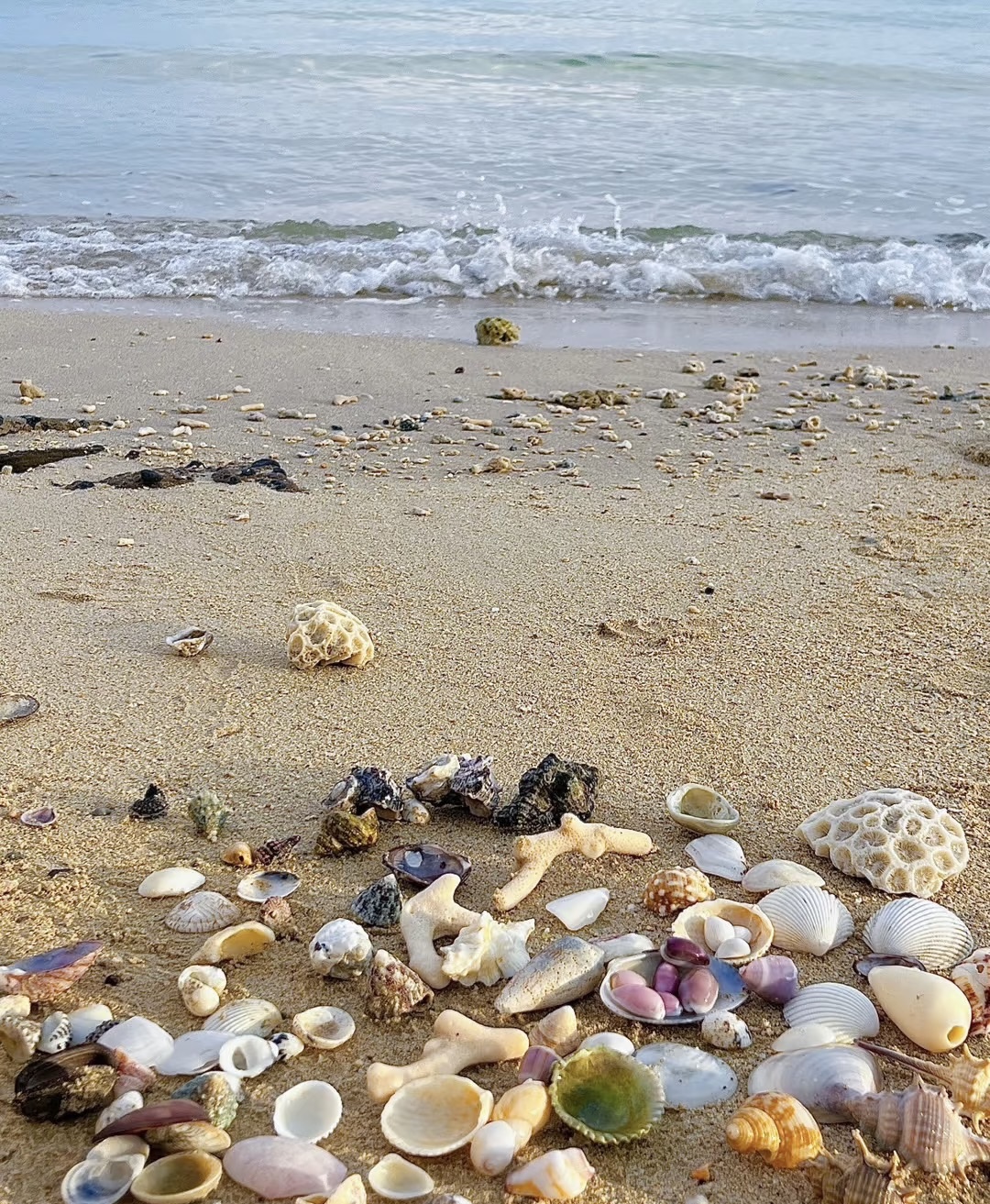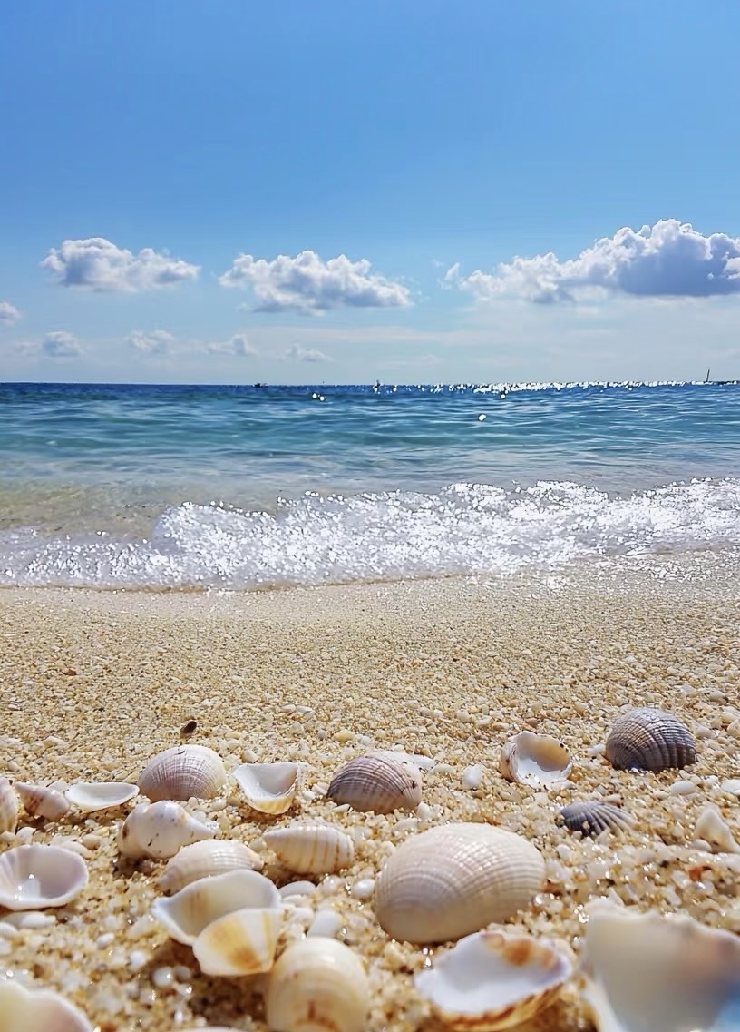 贝壳沙滩沙子洁白松软,海水清澈,果冻感十足,晴天时海水层次分明。沙滩上散落着大量贝壳和珊瑚石,是拾贝爱好者的天堂。徒步结束后,乘车返回各自入住的酒店。