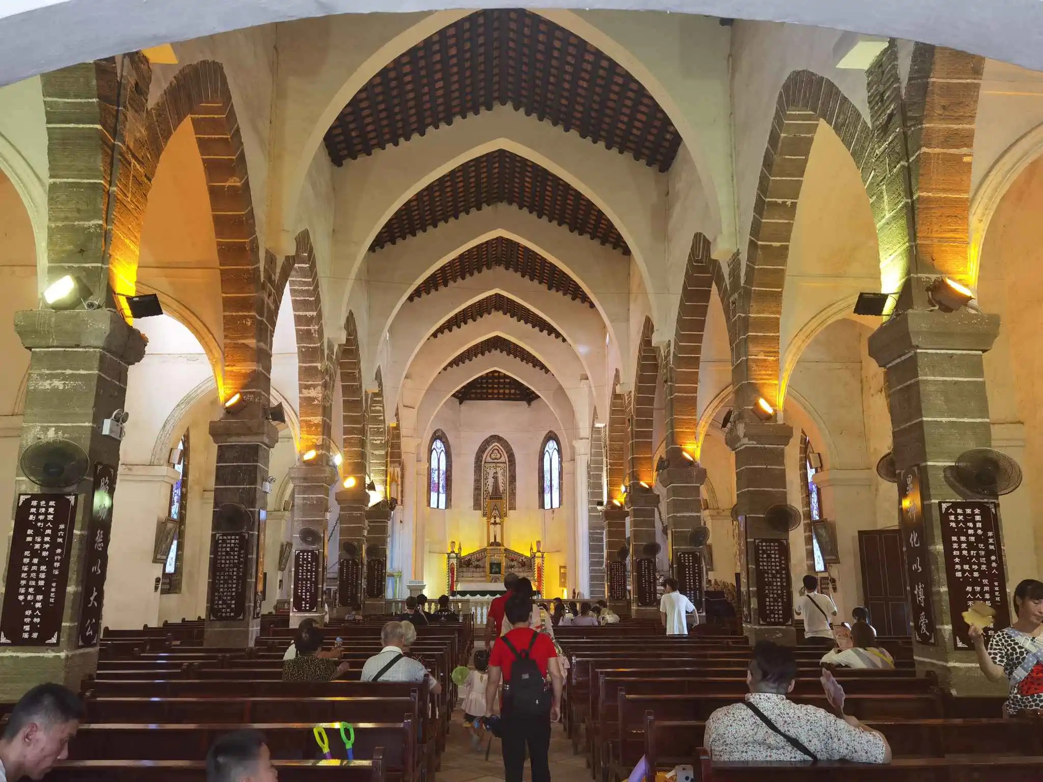 天主教堂是涠洲岛上的天主教堂位于涠洲岛东北部的盛塘村,村中80%的人信奉天主教。这座始建于1853年的天主教堂是法国巴黎外方传教会在北海地区建造的,如今依然是宗教活动场所,据说来这里祈祷很灵验。