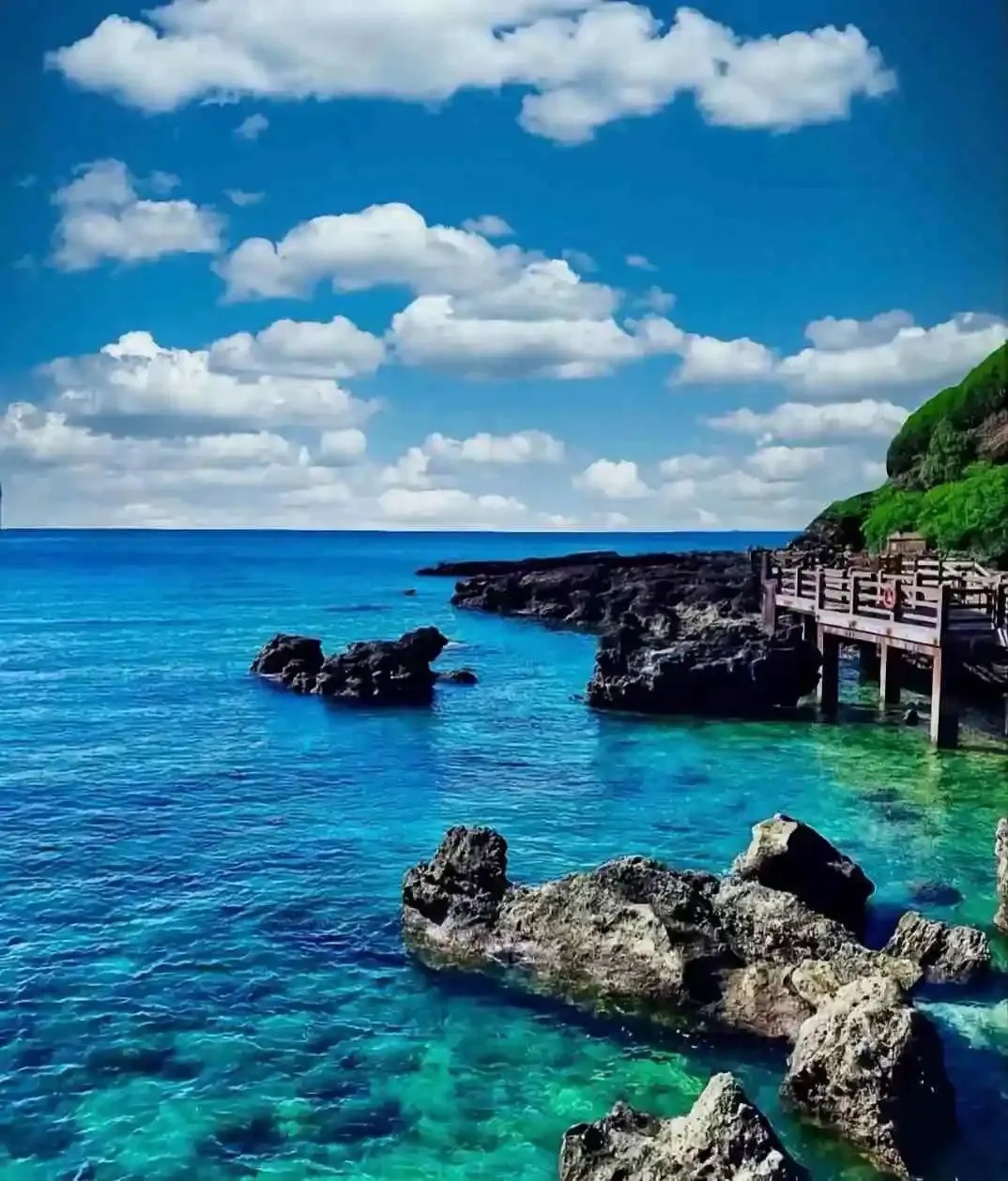 早餐后,乘车前往北海国际码头,乘船至中国最大且最年轻的火山岛【涠洲岛】(坐船时间约80分钟),岛上不但气候宜人,资源丰富,风光秀丽,景色迷人,四季如春,气候温暖湿润,富含负氧离子的空气清新宜人,美如蓬莱仙境的涠洲岛。下船后沿着长廊往上走,过检票口后,开始环涠洲岛徒步,沿一线海岸线观涠洲亮丽海岛风光至网红打卡地【蓝桥】