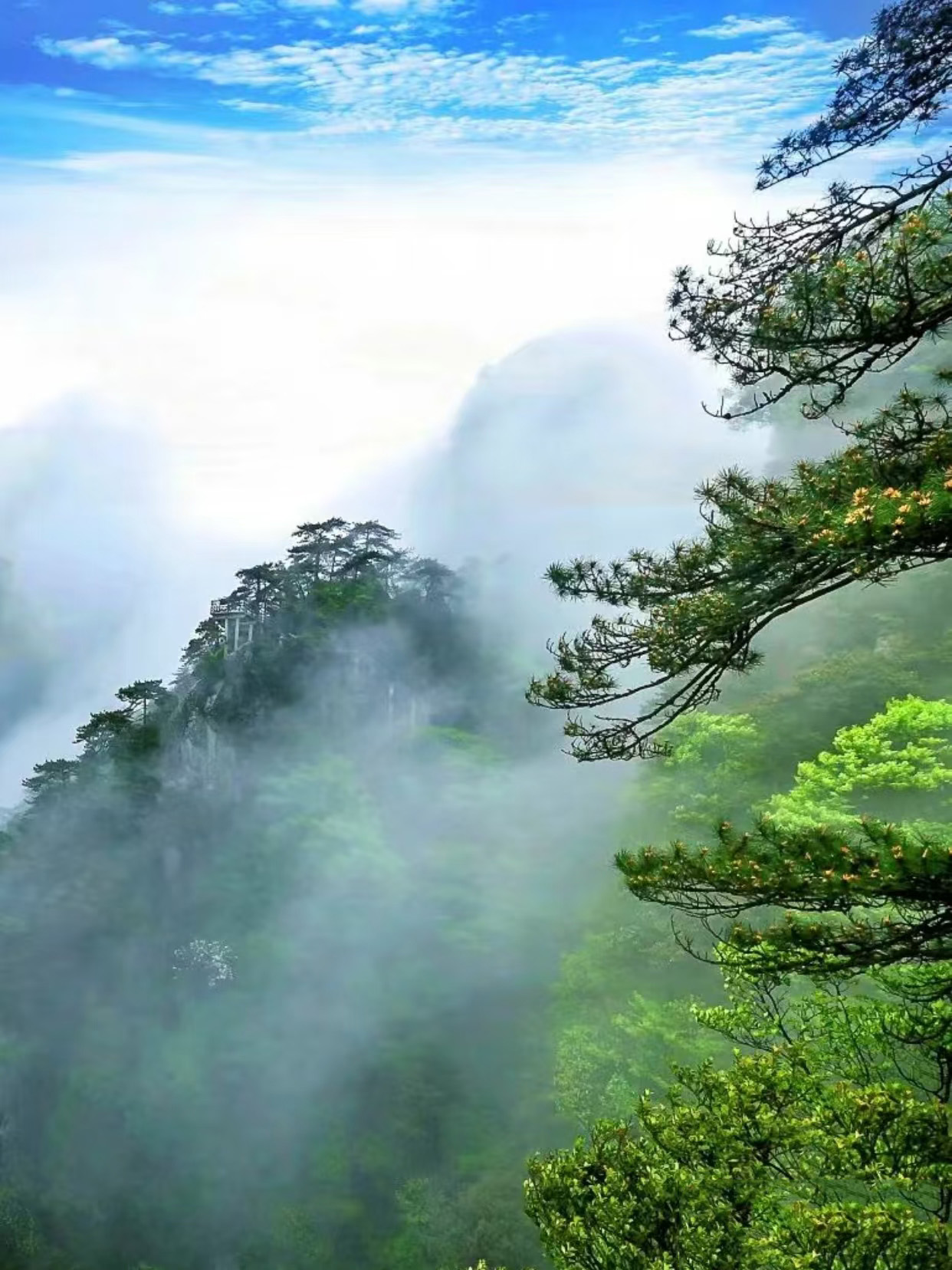 明月山位于江西宜春,因山体呈半圆形,宛如半轮明月而得名。它集巍峨山岳、壮丽瀑布、葱郁竹林和珍稀温泉于一身,其中云谷飞瀑落差达119.57米,享有“江南第一高瀑”的美誉。