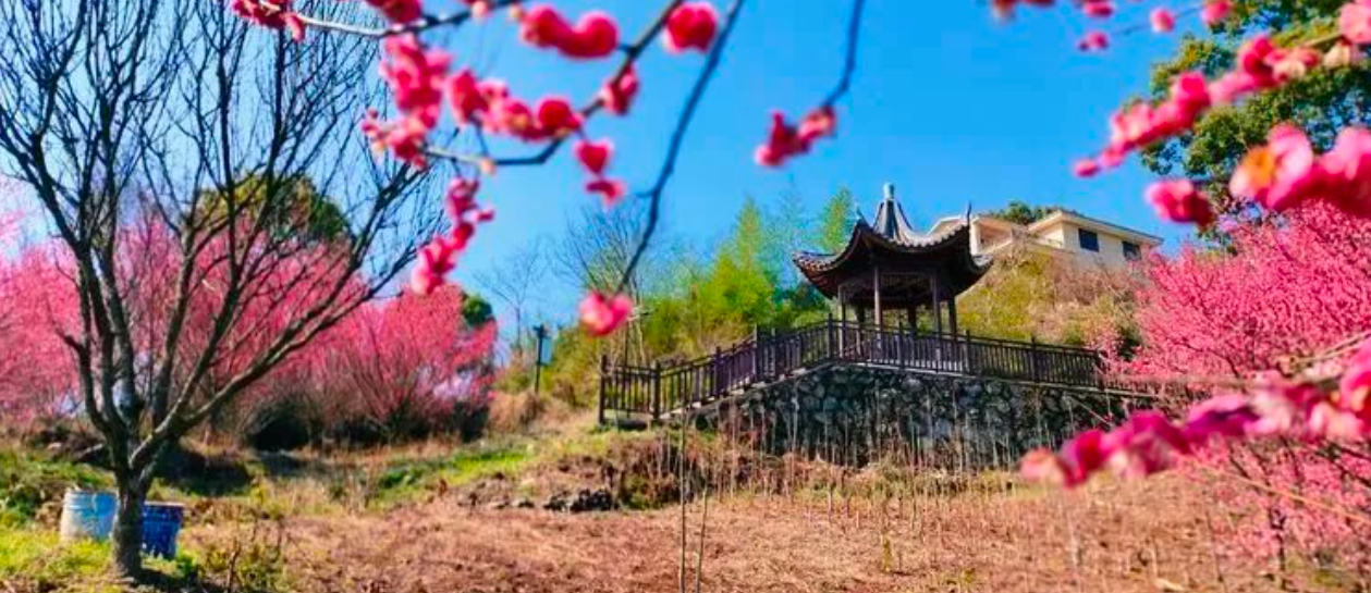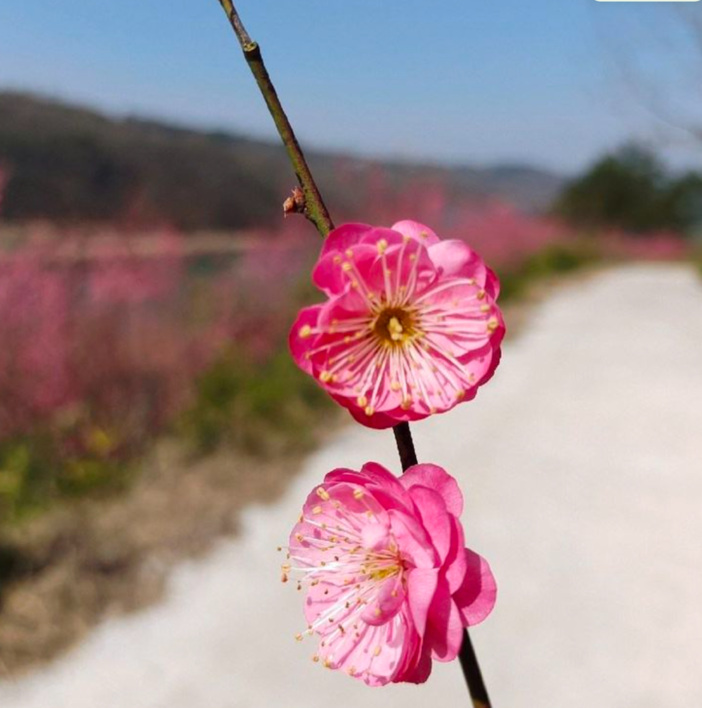 梅林村 地处沃洲山,是唐诗之路的重要节点之一,全村在原始古木的环抱之中,因梅花而得名,历史悠久,文化积淀深厚。初春,前往梅林村的公路一路都是梅花大道,一路上姹紫嫣红,红梅和桃花渐次盛开。这里的的梅花是一个山头连着一个山头的,视觉上很是震撼。所以这里也是原生态的赏梅地,看哪个山头人少就往哪个山头钻,可以尽情的享受这片“大梅花海”。