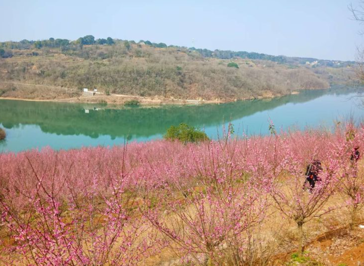 放眼望去,花开烂漫,山翠梅艳,风光旖旎,别有一番韵味。