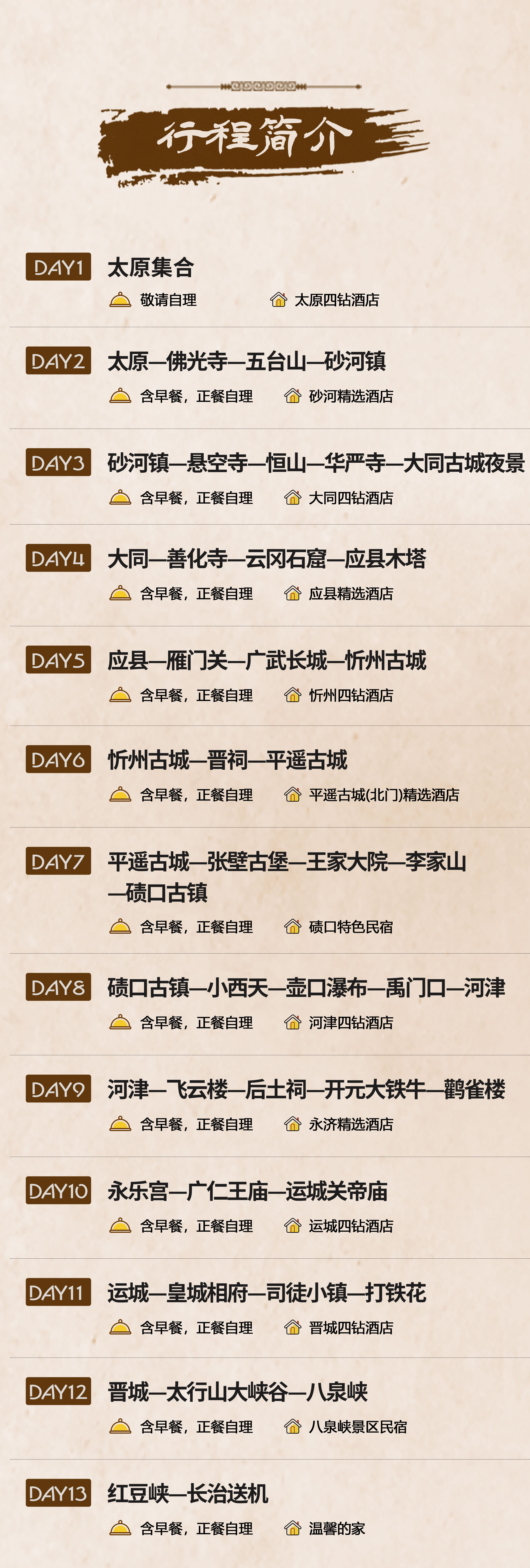 游览结束后,我们将驱车返回【长治】,结束本次行程。