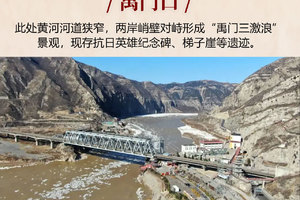 沿河南下,经【禹门口】(龙门)。这里两岸峭壁对峙,是黄河冲出晋陕峡谷的咽喉,可遥想“鲤鱼跃龙门”的古老传说,领略大河挣脱群山、奔涌向前的壮阔。