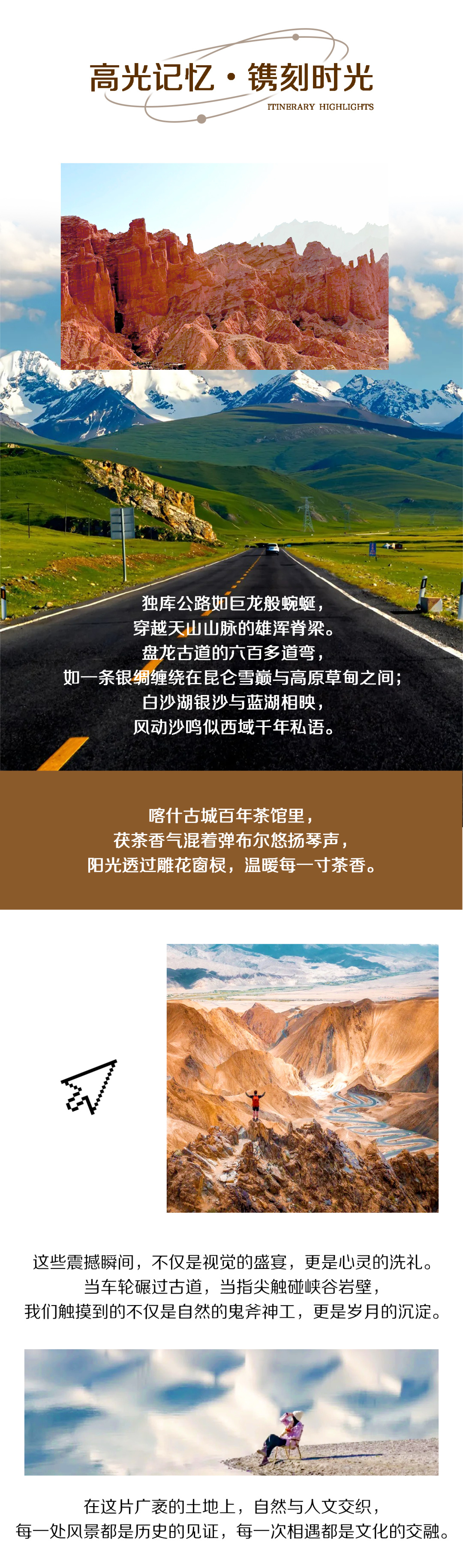 4.西部旅行,尤其是新疆地区,路途距离远、行车时间长,相对较艰辛,希望参加的队员有合理的心理预期。另外:新疆道路限速、管制、安检等政策随时在发生变化,我们也会及时关注消息,行车安全第一,由此,晚抵达景点/入住酒店可能超出帖子里的行车参考时间,请大家予以理解并积极配合。